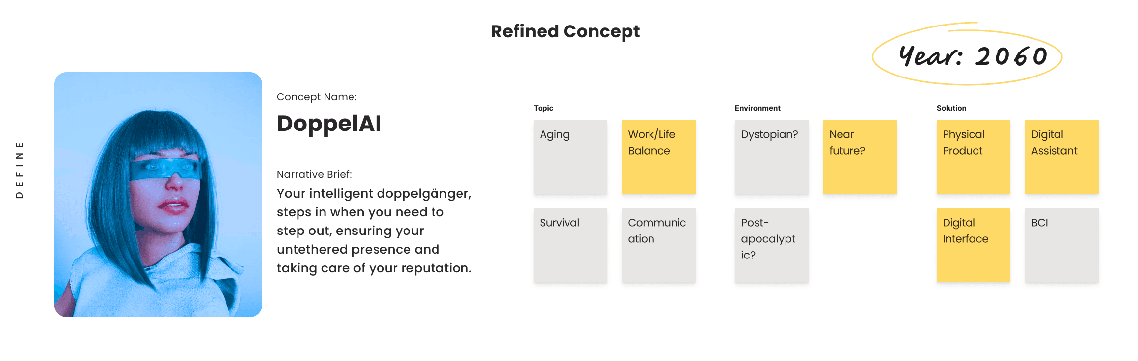 To ground DoppelAI, we studied tech shaping digital avatars - Large Language Models (LLMs), AI, Voice User Interfaces (VUI), Blockchain, and 3D Digital Scanning, drawing inspiration from real-world applications and their potential evolution by 2060.