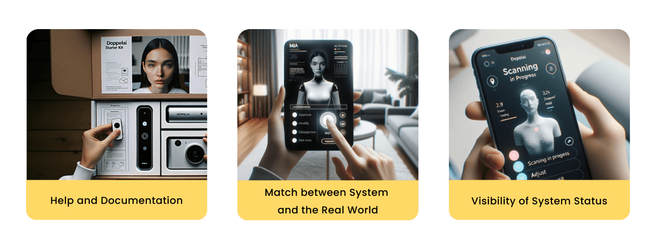 DoppelAI enables seamless human-AI interaction. Chat inputs, security toggles, automation triggers, profile customization, and time-tracking tools enhance collaboration, privacy, efficiency, and balance. These affordances work in sync with key heuristics, ensuring intuitive interactions, clear system feedback, and seamless guidance.