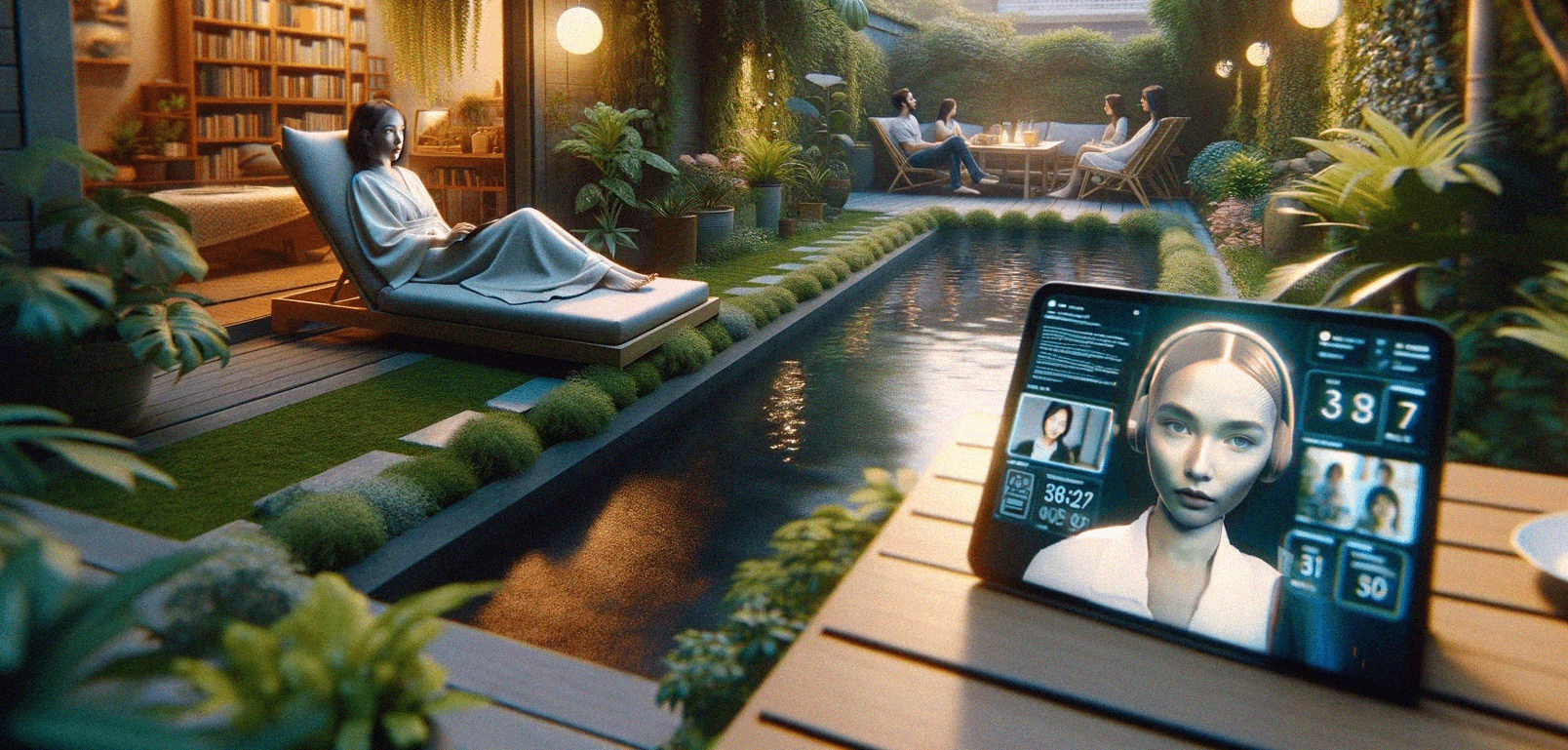 Hyper-Realistic Digital Personas: Blending digital avatars seamlessly with physical workplace experiences, exemplified by Bloomberg's virtual avatar.