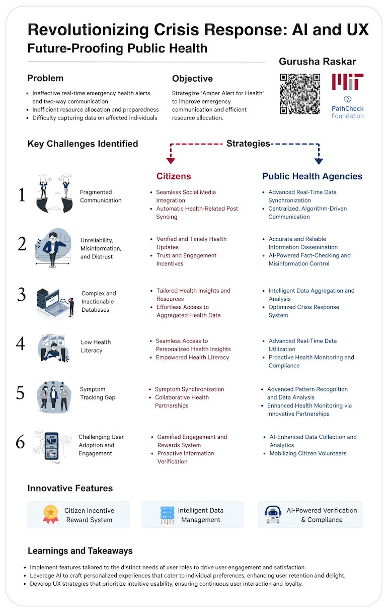 During health crises, public health agencies lose nearly half of their critical response time due to communication gaps with diverse populations. Inspired by the immediacy and clarity of Amber Alerts, I explored how targeted UX interventions could close communication gaps and reduce misinformation, impacting over 345 million users.